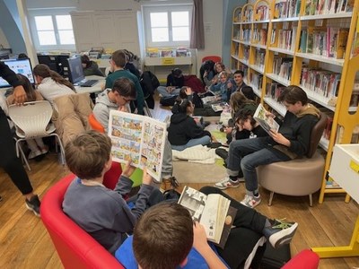 - Un lieu de lecture, où romans, contes, nouvelles, fables, BD, albums, mangas sont en prêts et renouvelés régulièrement, ainsi tous les mois des nouveautés viennent enrichir le fond.